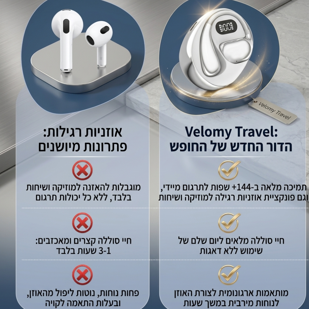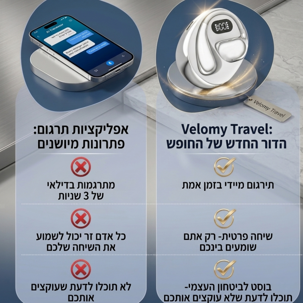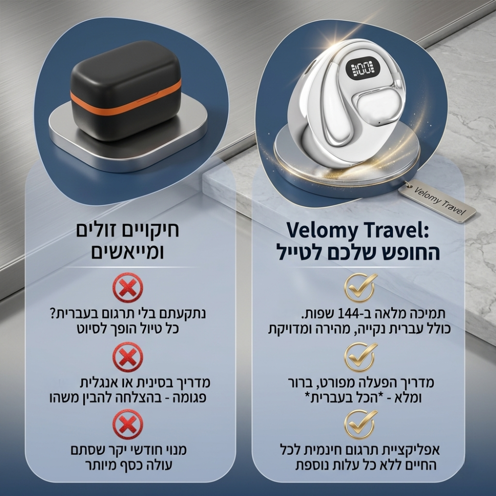 תחשבו על הרגע הזה בחו״ל שבו ניסיתם להזמין משהו או לשאול שאלה פשוטה – אבל המילים נעלמו, הידיים התחילו לזוז באוויר ואתם רק קיוויתם שהבינו אתכם. עכשיו תדמיינו שזה נגמר. האוזניות החכמות שלנו מתרגמות עבורכם בזמן אמת יותר מ־144 שפות – ככה שאתם יכולים לדבר עם כל בן אדם בעולם: לשאול, להזמין, לנווט, להתחבר לאנשים מקומיים ולהרגיש חלק מהתרבות מבלי להרגיש תיירים אבודים. בלי גוגל טרנסלייט, בלי לחץ, ובלי מחסום שפה שמרחיק אתכם מהחוויה. זו לא רק טכנולוגיה – זה חופש לנוע, לדבר ולהרגיש בבית בכל מקום ומדינה בעולם.